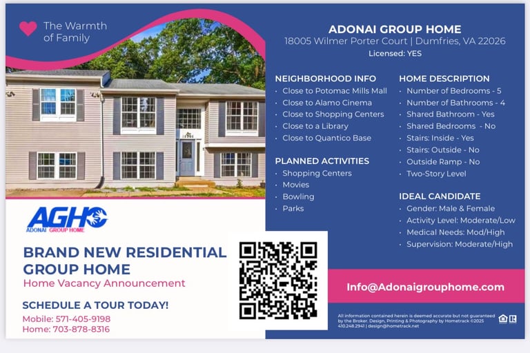 At Adonai Group Home, we are committed to providing a safe and supportive environment for individuals who require assistance with their daily living. Our highly trained staff members work tirelessly to meet each resident's unique needs and promote independence, dignity, and overall well-being.
